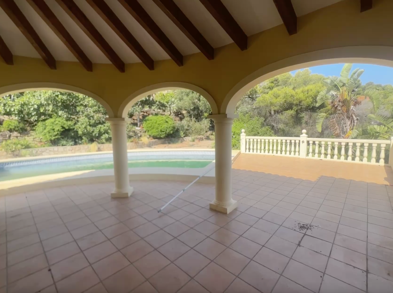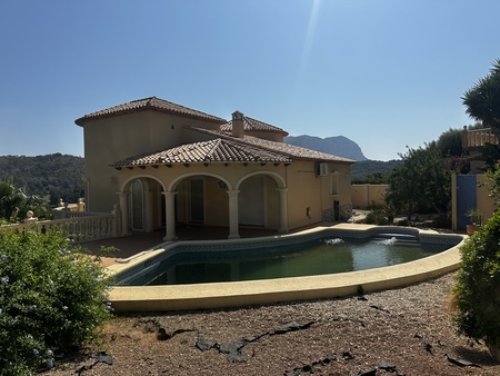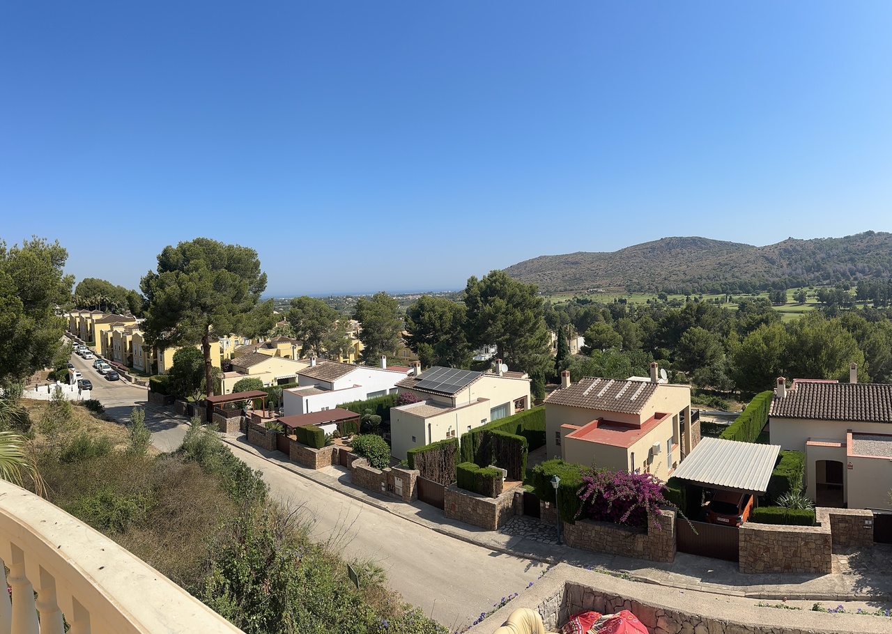 Elegante villa met privézwembad en golfzicht in La Sella, Costa Blanca Deze vrijstaande villa met twee verdiepingen bevindt zich in de prestigieuze woonwijk La Sella (Alicante, Spanje) en biedt privacy, open uitzichten en een hoogwaardige mediterrane levensstijl. Slechts 14 km van de zee en gunstig gelegen tussen Valencia (100 km) en Alicante (90 km), combineert deze woning rust met uitstekende bereikbaarheid. La Sella is een gewilde residentiële omgeving met vrijstaande woningen, omgeven door natuur en vlakbij de golfbaan. Alle dagelijkse voorzieningen bevinden zich in Pedreguer, op slechts 6 km afstand. Indeling Hoofdniveau (bovenverdieping): Lichte woon- en eetkamer met toegang tot een ruim terras Aparte keuken 2 slaapkamers 1 badkamer Gastentoilet Bijkeuken Vanaf deze verdieping heeft u directe toegang tot het privézwembad, dat zich op hetzelfde niveau bevindt als de belangrijkste leefruimtes – ideaal voor comfortabel binnen-buiten wonen. Begane grond – Gastenappartement: Zelfstandig gastenverblijf of kantoor Keuken Badkamer Privéterras Perfect voor gasten of als aparte werkruimte. Buitenruimte Privézwembad Ruime terrassen Mooie achtertuin met veel privacy Carport Privéoprit Gasinstallatie voor verwarming De woning is voorzien van centrale verwarming op gas en is ideaal als permanente woning, vakantiehuis of investering aan de Costa Blanca.